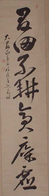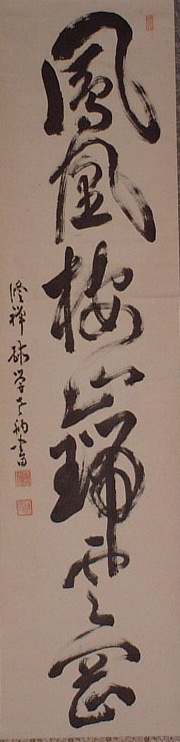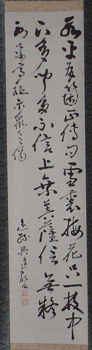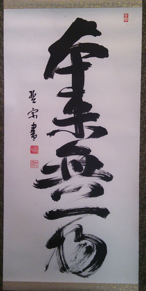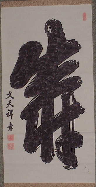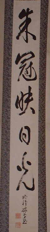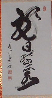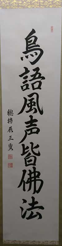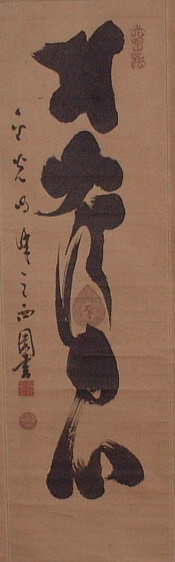 | 直指人心見性成仏(じきしにんしんけんしょうじょうぶつ) | 真理は自己の心の外にあるのではなく、自己の心のなかにこそ発見される。真理であるその自己の本性をみるならば、仏となることができる、という意。 | 「大乗天巌」の署名あり。 | H27.9.1~9.15 本堂 R05.10~12 新庫裏 |