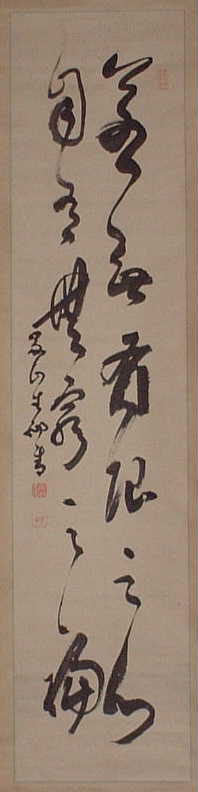 (画)椎茸典座 (賛) 厭眉北鶴登如弓 烈日晒苔意気雄 他不是吾宗悦尽 雖共乃祖学玄風 |