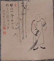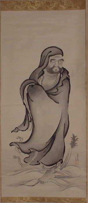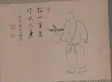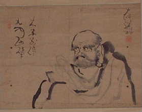 (画) 達磨 (賛) 一語嘲梁帝 群臣皆熱瞞 無情鈍致僕 太怪化縁寛 |