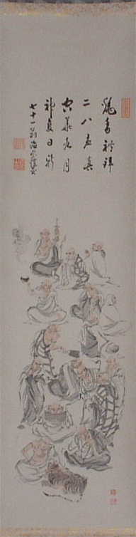 (画)十六羅漢 (賛) 焼香禮拝 二ハ応真 空華水月 神変日新 七十一翁徳宗謹○ |