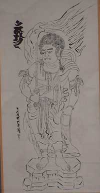 | (画)不動明王 | 不動明王は、大日如来の使者で、人々の煩悩を断ち切るため奔走しているとされる。 | H28.4~6 R3.7~9 客間 |