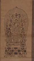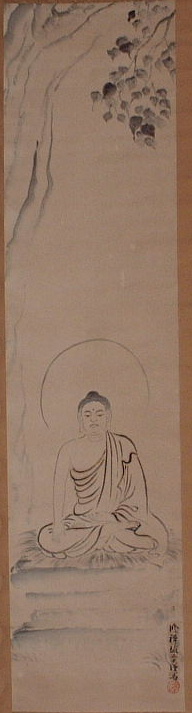| (出山釈迦如来) | 6年の苦行を終えたのち、さらに真の悟りを求めて雪山を出るお釈迦さまの画。 禅宗ではおさとりを開かれた後のお釈迦さまの姿ともされる。 お釈迦さまがおさとりを開かれた日は12月8日とされており、この日には「成道会(じょうどうえ)」という法要が行われる。「曹洞宗行持軌範」によると、この法要の前日準備に関し、出山像を須弥壇上に掛けるよう記されている。 |