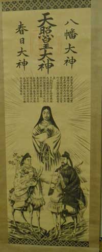 天照皇大神 八幡大神 春日大神 天照皇大神勅皇孫曰豊 葦原千五百秋之瑞穂國 是吾子孫可王之地也冝 爾皇孫就而治焉行矣寳 祚之隆當與天壌無窮者 矣 天照皇大神手持寳鏡授 天忍穗耳尊而祝之吾兒 視此寳鏡當猶視吾可與 同床共殿以為斎鏡 髙皇産靈尊因勅曰吾則 起樹天津神籬及天津磐 境當爲皇孫奉齋矣汝天 兒屋根命天大玉命宜持 天津神籬降於葦原中國 亦爲皇孫奉齋焉 | 仙通三姿 神勅 御神號 一段落目:天壌無窮の神勅 天照大御神が瓊瓊杵尊(ににぎのみこと)に勅して申されるには、 「豊かで瑞々しいあの国は、わが子孫が君主として治めるべき国土です。わが孫よ、行って治めなさい。さあ、出発しなさい。皇室の繁栄は、天地とともに永遠に続き、窮まることがありません。」 二段落目: 天照大神(アマテラスオオミカミ)は持っていた寶鏡(タカラカガミ)を天忍穗耳尊(アメノオシホミミノミコト)に授けて、祝って言いました。 「我が子よ。この寶鏡(タカラカガミ)を見るときには、私(=アマテラス)を見ていると思いなさい。住まいを同じにして、宮殿を同じにして、この鏡を神として祀りなさい」 三段落目:日本書紀 高皇産靈尊(タカミムスビノミコト)は命じました。「わたしは神が宿る『樹』の天津神籬(アマツヒモロキ)と神が宿る『岩』の天津磐境(アマツイワサカ)を立てて、私の子孫を祝い祀ろう。 お前たち、天兒屋命(アマツコヤネノミコト)・太玉命(フトダマノミコト)は天津神籬(アマツヒモロギ)を大切にし、葦原中国(アシハラナカツクニ=地上)に降りて、私の孫を祝い祀りなさい」 |
