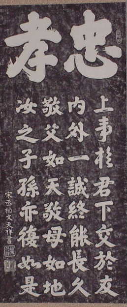| 上事於君 下交於友 內外一誠 終能長久 敬父如天 敬母如地 汝之子孫 亦復如是 |
