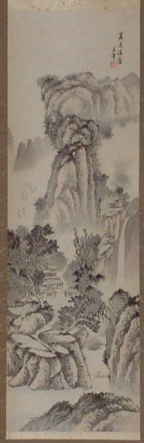 (賛) 艸鞋扶竹杖 行脚任東西 富岳三千丈 比○一寸低 (画)富士見西行図 |