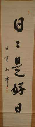 『碧巌録』第六則「雲門十五日」の本則に「雲門垂語云。十五日已前不問汝。十五日已後。道将一句来。自代云。日日是好日」とある。 雲門とは、中国の唐未から五代にかけて活躍された雲門文偃(うんもんぶんえん)禅師の事。 毎日いい日が続いてけっこうなことだ、などといった浅い意味ではありません。 私達は、今日はよい日だ悪い日だという場合、天気だけでなく、お金が儲かった・損をした、よいことがあった・嫌なことがあったなど、そんなものさしで判断します。 しかし、これは優劣・損得・是非にとらわれた考え方です。 日々是好日とは、そんなこだわり、とらわれをさっぱり捨て切って、その日一日をただありのままに生きる、清々しい境地です。 たとえば、嵐の日であろうと、何か大切なものを失った日であろうと、ただひたすら、ありのままに生きれば、全てが好日こうにちなのです。 禅では、過ぎてしまったことにいつまでもこだわったり、まだ来ぬ明日に期待したりしません。 目前の現実が喜びであろうと、悲しみであろうと、ただ今、この一瞬を精一杯に生きる。 その一瞬一瞬の積み重ねが一日となれば、それは今までにない、素晴らしい一日となるはずです。 寄贈者:青木一枝さま |