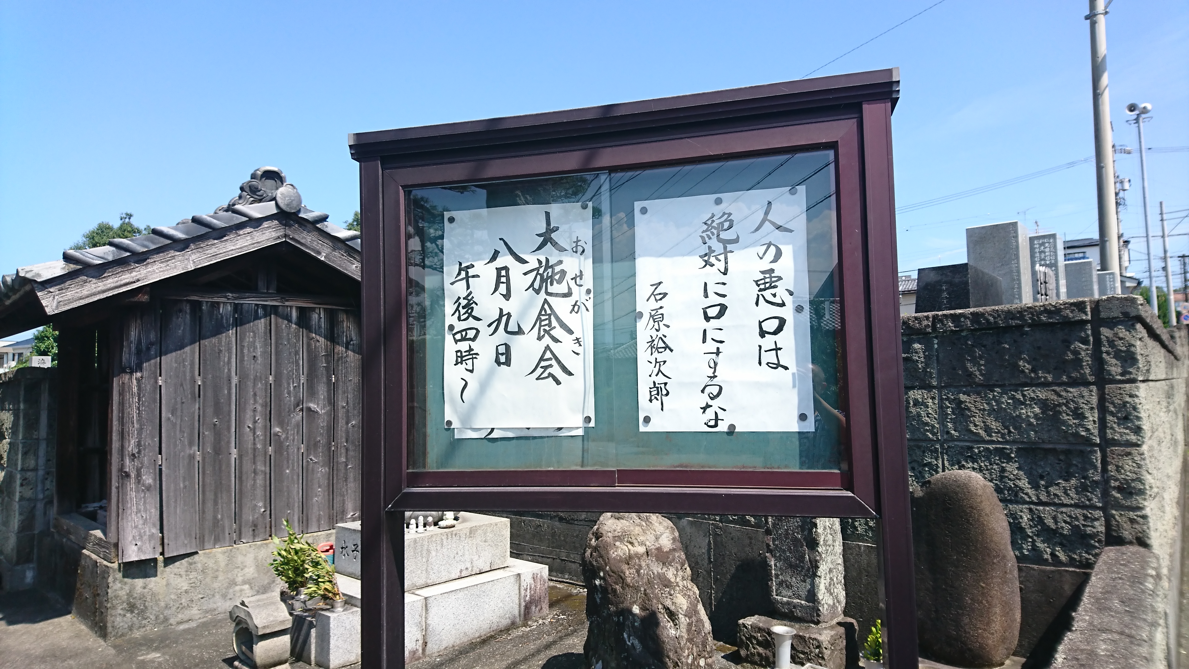 「人の悪口は絶対に口にするな」 石原裕次郎さんがポリシーとしていた言葉だそうです。 「人にしてあげたことはすぐ忘れろ、人にして貰ったことは生涯(一生)忘れるな」と続きます。 この言葉は、平成24年に紹介した、 「かけた恩は水に流せ 受けた恩は石に刻め」に通じますね。 仏教に「不自讃毀他戒(ふじさんきたかい)」という戒があります。自分の自慢をしたり、他人の悪口を言いふらすなどしてはいけないということです。 石原裕次郎さんは、生前からたいへんな人気があり、亡くなった後、今でもなお多くの方から慕われる傑出の人物です。 このようなポリシーがあったからこその石原裕次郎だったのでしょうね。 DIAMOND online で解説をいただきました。 https://diamond.jp/articles/-/181924 新潮社「お寺の掲示板」に掲載されました https://www.amazon.co.jp/dp/4103528710 |