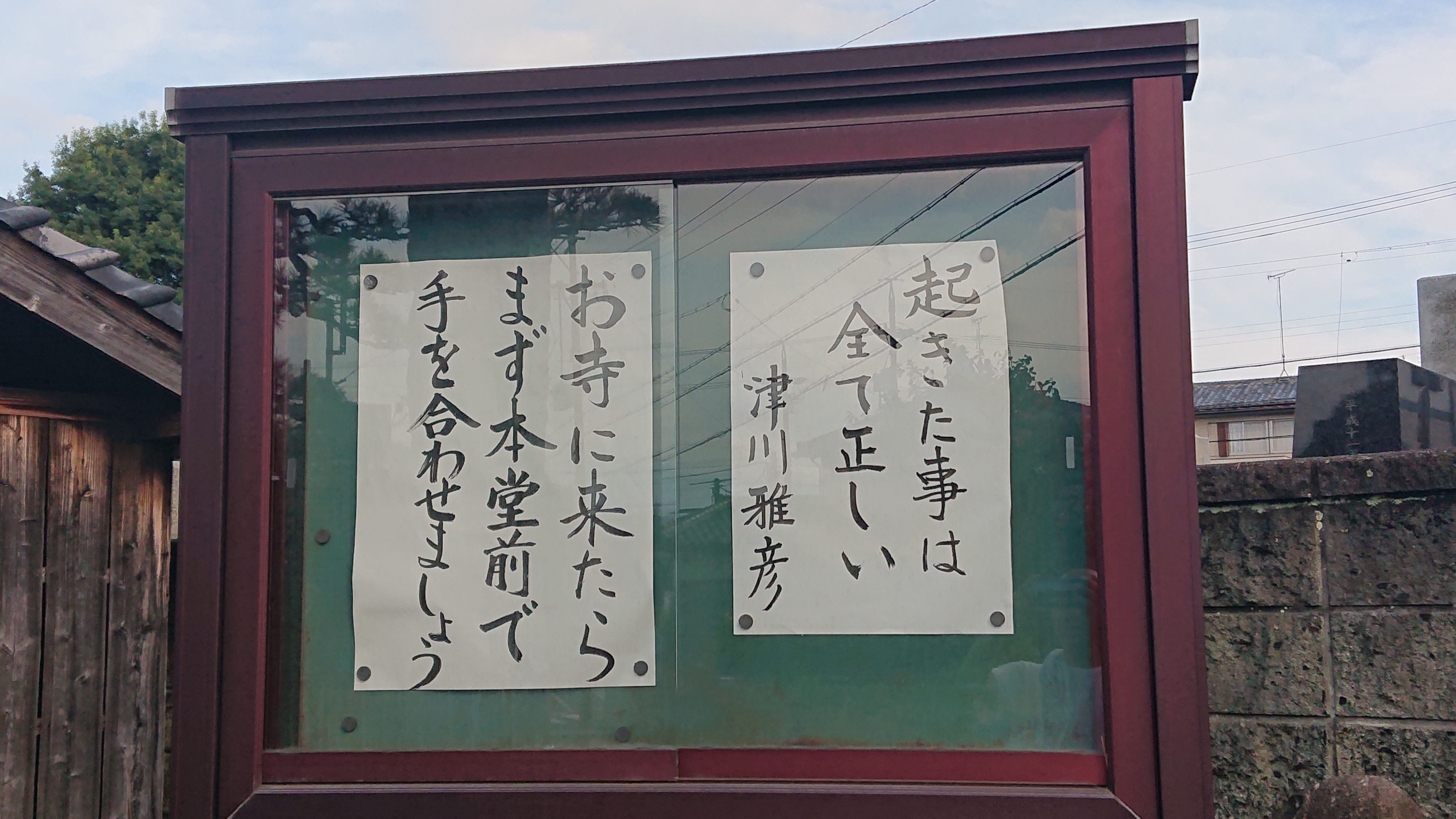 「起きたことは全て正しい」 本年(平成30年)8月に俳優の津川雅彦氏が亡くなりました。 その追悼番組のなかで娘の真由子さんが、津川氏から「起きたことは全て正しいと思って前を向いて進め。偶然はない、必然なんだ」と教えられた、というエピソードを明かしました。 仏教では因果を説きます。起こった結果には必ず原因があります。実際に起こった事は、まさに因果の「正解」が発生したという事になります。 また起こっていないことを心配する事も意味がありません。因果が正しくないから起こっていない、またはまだ機が熟していないから起こっていないという事なのです。 |