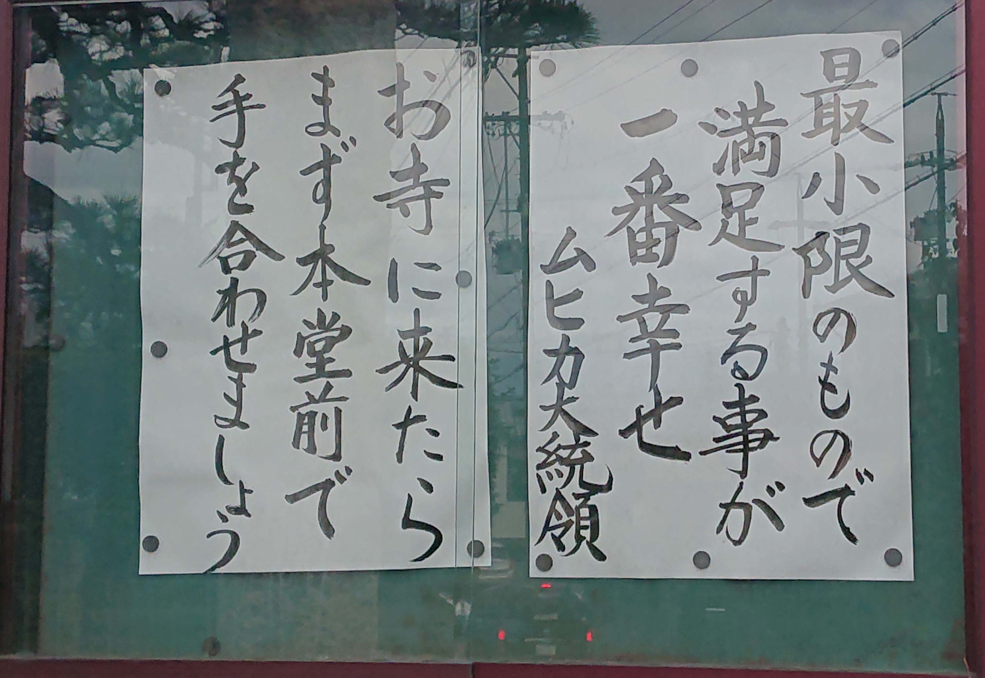 「となりの芝生を 青いとみるか 枯れたとみるか うらやんだり さげすんだり」 昨年仏教伝道教会主催「お寺の掲示板大賞2019」という企画があり、その中で応募があった作品のひとつです。京都市下京区、本山仏光寺さんにおいて6月5日に掲示されていたものです。 私たちは他の人と比べ、自分が劣っていればうらやみ、自分が優れていれば相手を蔑んでしまうものです。 これは、比べる気持ちがあるからです。仏教ではこれを「慢」といい、煩悩のひとつとされます。 常に努めはげみ、自分に自信を持てば、比べる必要がなくなります。 |