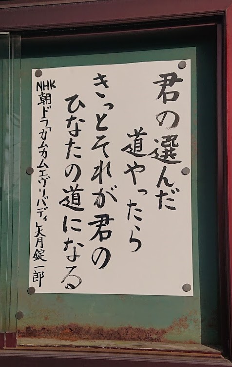 「君の選んだ道やったら きっとそれが君のひなたの道になる」 NHK朝ドラ カムカムエヴリバディ 大月錠一郎 NKH朝ドラ「カムカムエヴリバディ」のセリフからです。 ドラマの中で、夢が叶わず地元に帰る青年に向けた言葉でした。 NHKの朝ドラは、地方に住む若者が都会に出て活躍するなど、主人公が成功し思い通りになる世界が描かれる事が多いです。NHK朝ドラに限らず、多くのドラマは、主人公の思い通りに、視聴者の気持ちに叶うような、文字通りドラマチックなお話しが描かれがちですが、このドラマは「思い通りにならない」様子が多く描かれました。主人公の思い通りにならず、視聴者の期待を裏切り続ける内容でした。私たちが住む現実の世界も思い通りにならないことの連続でしょう。 仏教では「四苦八苦」のように「苦」を説く宗教だ、とよく言われます。「苦」とは仏教では「思い通りにならない」という意味で使います。老いる事も病気も死も、何もかもが自分の思い通りにはいかないものです。そんな思い通りにいかない世界をいかに生きていくかを説くのが仏教です。 そんな思い通りにいかない世界を生きていく中で、「君の選んだ道やったら きっとそれが君のひなたの道になる」という言葉がヒントになると思いました。「ひなたの道」というのが良いですね。「輝ける道」とか言わずに、陽の当たるあたたかい道、という感じで。うまくいかない、思い通りにいかない中でも、小さな成功に喜びを感じ、血の通ったあたたかい生活を送る事が良いんじゃないのかな。 |
