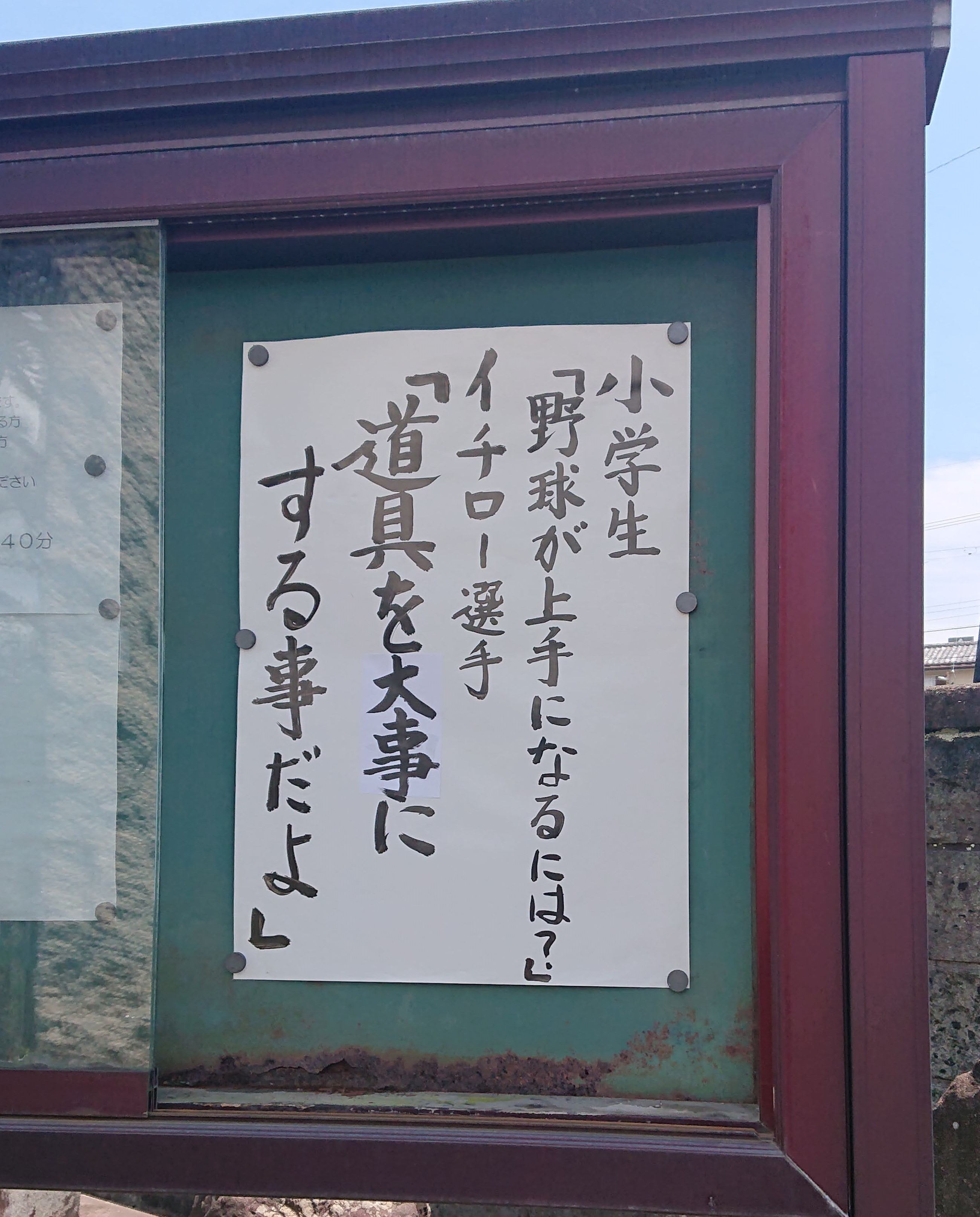 小学生 「野球が上手になるには?」 イチロー選手 「道具を大事にする事だよ」 アメリカのメジャーリーグでも活躍された日本の野球選手、イチローさんの言葉です。 イチロー選手に小学生が「どうしたら野球が上手になりますか」と聞いたところ、イチロー選手は 「バットやグローブなどの道具を大事にする事だよ」と答えたそうです。 私は今年の4月から、地元消防団の分団長をつとめさせていただくことになりましたが、就任の挨拶の時に団員のみなさんにこのイチローさんの言葉を紹介させていただきました。 実は私は消防団に入団したばかりの頃は、消防団を面倒に思いさぼりがちだったのですが、ある先輩団員が、消防車を愛情を込めて大切に扱う様子を見て、「自分もこうなりたい」と思って、指定の活動服をしっかり着て階級章や名札などもきちんと付け、道具を愛情込めて大切に扱うように心がけました。そうしたらだんだん消防団の活動が楽しくなってきて、気がついたら分団長まですることになりました。 着るものをきちんとして道具を大切にすると心が整います。心が整えば練習にも気持ちが入ります。イチロー選手もそのような事を言いたかったのだと思います。 曹洞宗には、「威儀即仏法 作法是宗旨(いいぎそくぶっぽう さほうこれしゅうし)」という言葉があります。「日常生活の身なりや立ち居振る舞いは全て仏の道であり、これが曹洞宗の教えである」という意味です。みなさんも、身の回りの道具を愛情を込め大切にしていただきたいと思います。そうすることで心が整い、勉強とか部活とか、仕事や日常生活が気持ちよく送る事ができると思います。 |