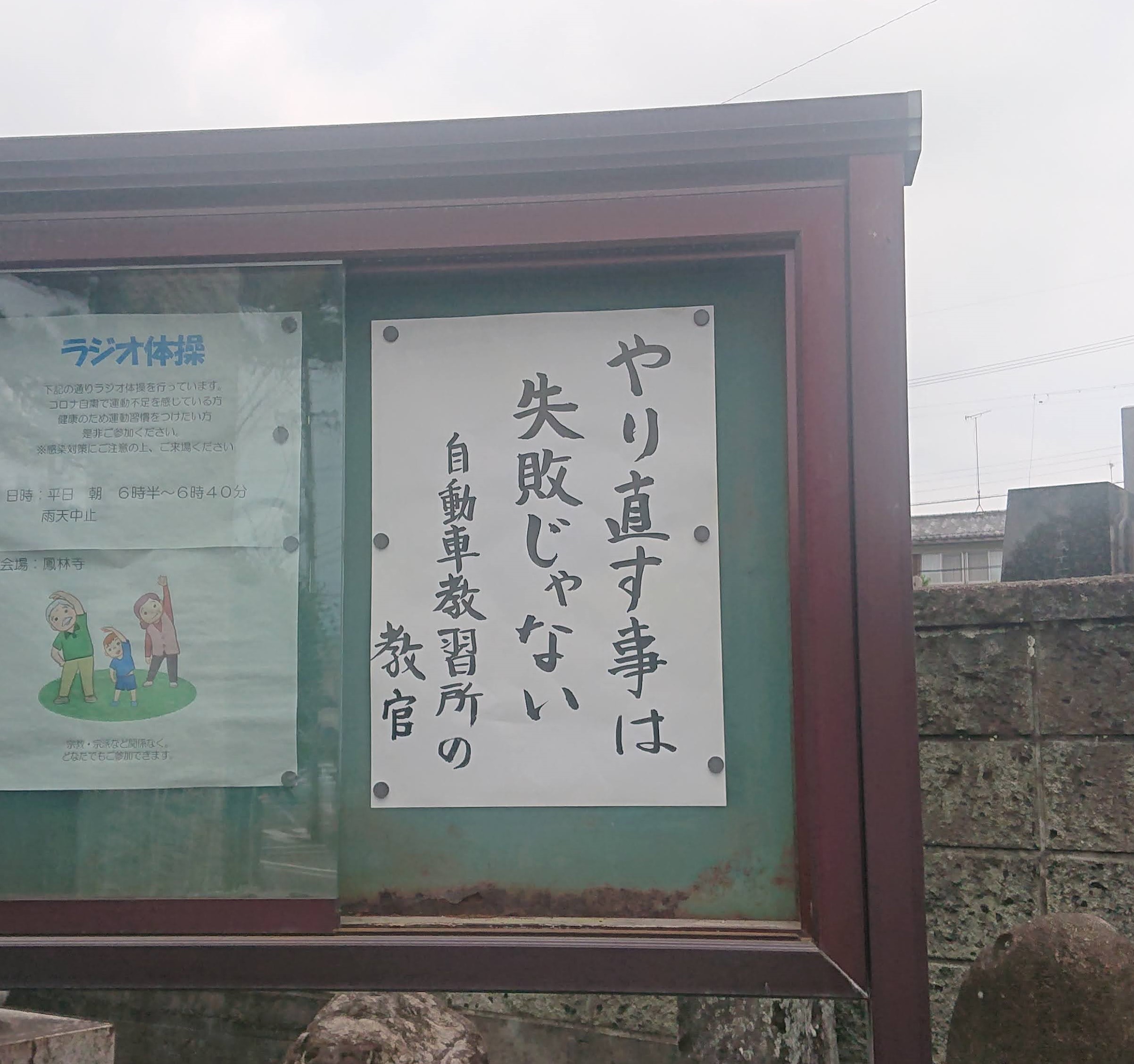 「やりなおす事は 失敗じゃない」 自動車教習所の教官 自動車教習所での運転教習は、あまりいい思い出はない人が多いと思います。私もつらい思いをして運転免許を取得しました。 もう20年くらい前でしょうか、小さな居酒屋のカウンターで知人と飲んでいたら、たまたま隣に座っていたおじいさまが、昔、運転免許の教官をしていたとの事でした。 自分が免許を取った時、厳しいことを言われてつらかったという話をしたところ、「こっちだって命がけだ。なにしろ運転免許を持っていない人が隣で運転しているんだから。言葉もきつくなることがある」と言っており、なるほどその通りだと納得しました。 さて今月の言葉は「やりなおす事は 失敗じゃない」という言葉です。先日テレビを見ていたら、自動車教習の様子が放送されていて、クランクの教習のところで、教官がうまくいかなかった生徒さんにかけた言葉です。「一度バックしてやりなおそう。やり直すことは失敗じゃない。」 自動車の運転は「認知 判断 操作」と教わります。「認知」は状況の確認 「判断」は認知した内容に基づいて行動を決めること 「操作」は認知判断に基づいて実際に車を動かすこと です。私たちも人生において、状況を確認し判断し行動を起こしているので、人生と車の運転は似ているなと思いました。自動車の操作も一回間違えて進んだ事実は消せませんが、戻ってやり直せば正しい道を進むことができます。私たちも生きていく中で「これは違ったな」と思ったらすぐに反省しやり直せば良いのです。 |